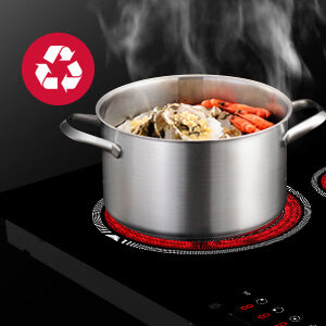 - Efficient & High Compatibility: By energizing a dense coil beneath the ceramic panel, heat is efficiently generated and transferred to the surface, allowing for quick heating and making it compatible with all flat-bottomed pans.