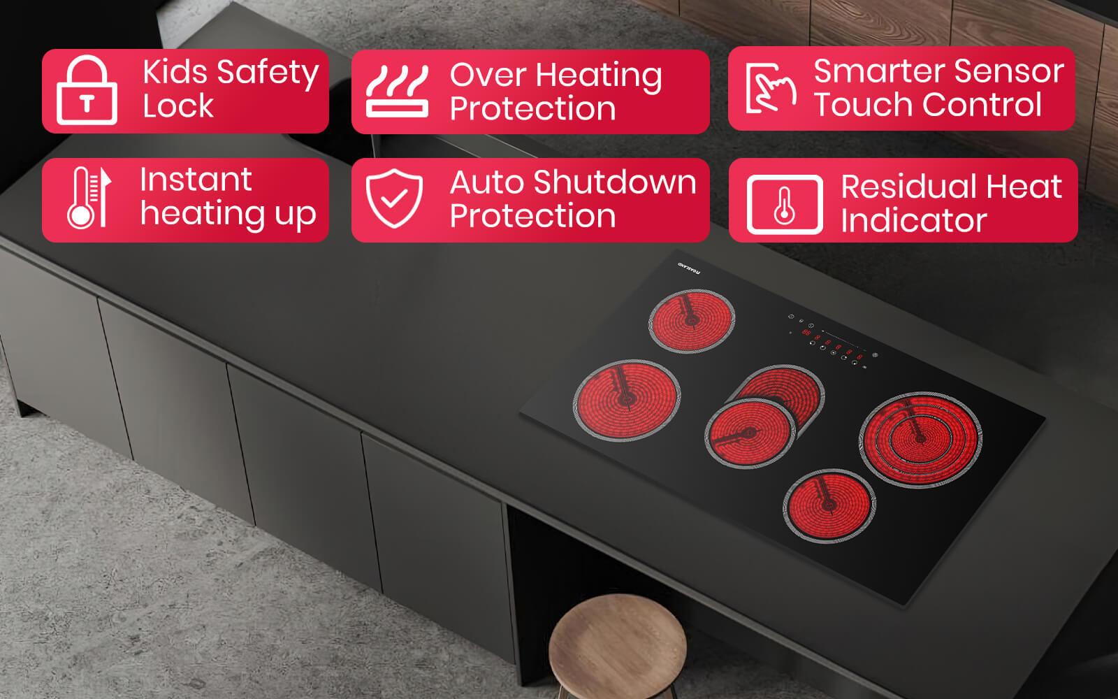 - Sleek & High-quality: The scratch-resistantone-piece vitro ceramic glass surfacewithstands high-temperature differences and thermal shocks. It adds elegance and makes cleaning a breeze. The Slider/Clickabletouch button ensures easy temperature adjustments for precise heating control.